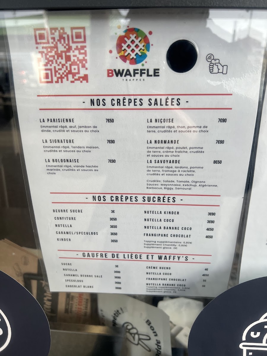 Located at 2 Av. du Mahatma Gandhi, 78190 Trappes, France, Bwaffle is a delightful restaurant known for its cozy atmosphere and delicious offerings. A favorite among locals, the restaurant specializes in crêpes, each generously filled with a variety of mouthwatering ingredients. Whether you prefer sweet or savory, the crêpes at Bwaffle are always well-prepared and satisfying. Many visitors have also praised the milkshakes, with one particularly popular option being the creamy, indulgent "crème bueno" milkshake - described as a true treat for those with a sweet tooth.